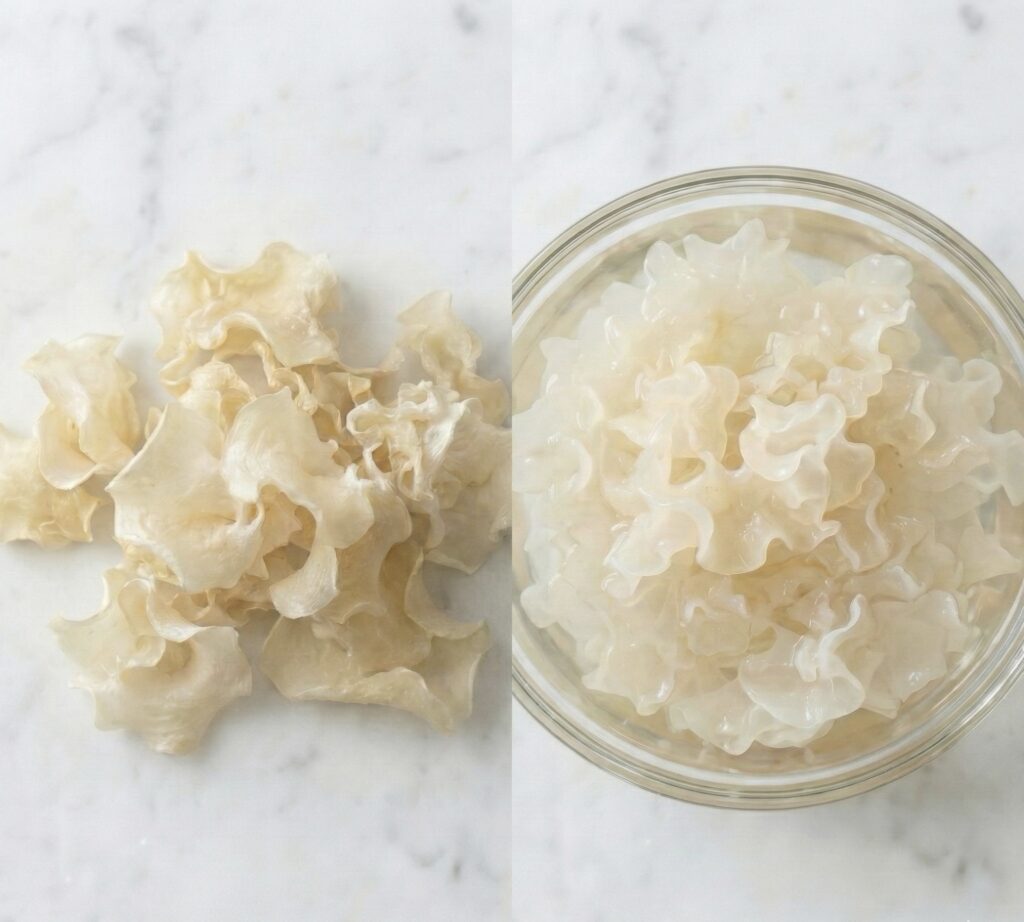 その潤いを補い、肌や粘膜の乾燥を和らげてくれる代表的な食材が、「白木耳(しろきくらげ)」です。 現代の栄養学的な視点で見れば、豊富な食物繊維と植物性多糖体を含み、いわば「植物性ヒアルロン酸」のような役割を果たしてくれる存在。