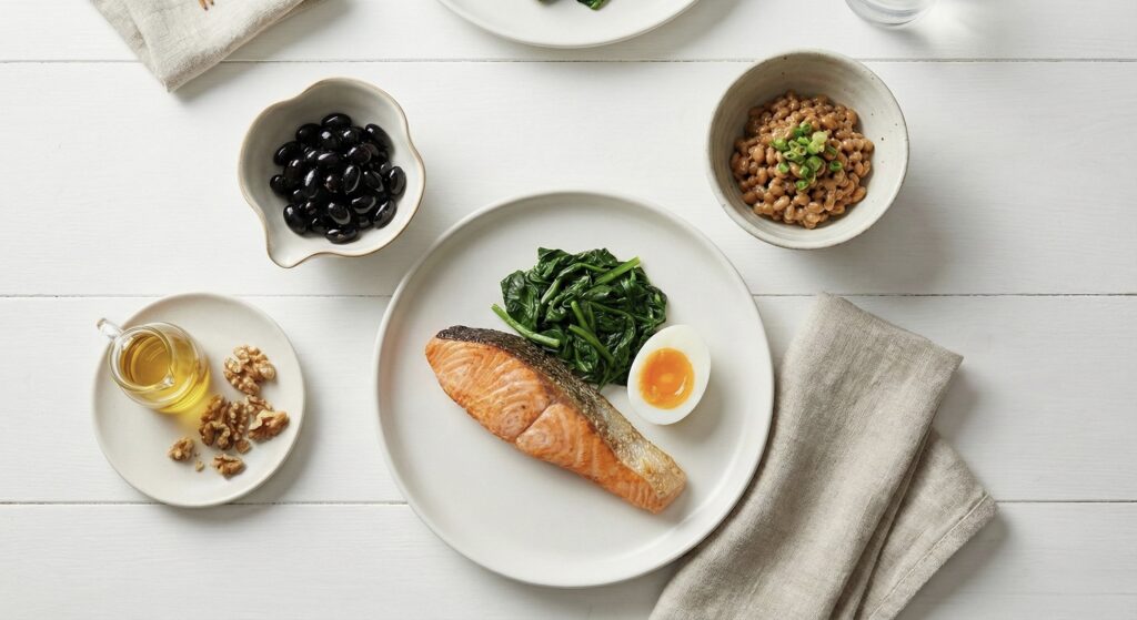 - Elara’s Tip: 朝食にゆで卵をプラス。納豆は、日本が誇る最強の美容食です。